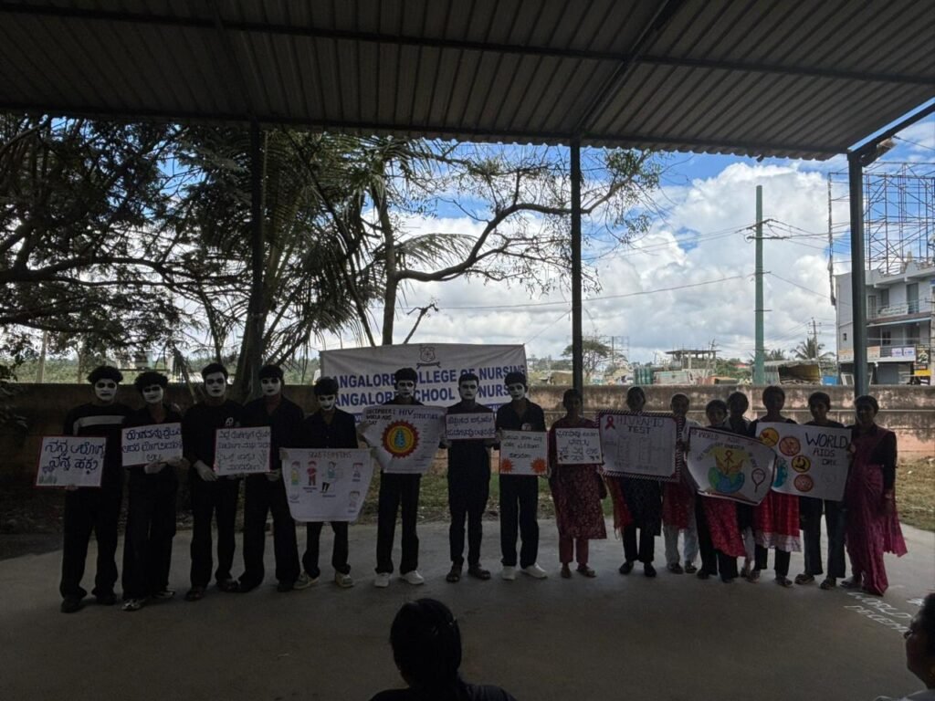 Gallery AIDS Awareness Day 2025 Rajyothsava Day First Aid & CPR Workshop Bangalore Nursing College Lamp Lighting & Oath Taking Ceremony 2025 Farewell 2025 National Heart Day 2025 Women's day 2025 Onam Celebration Sports day Lamp lighting & Oath Taking 2024 Best Students Workshop on First Aid Nutrition program World Heart Day Onam Festival Community health service Women's Day Celebration Students Program Onam Festival 2022 Community Health Service Student Program Polio Vaccination World Aids Day Student's Assignments College Bus Pooja Community Health Services Awareness Programs